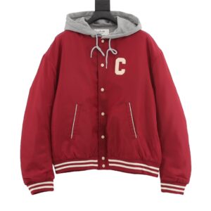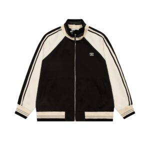 CELINE Chocolate Stitching Arc de Triomphe Stand Collar Baseball Jacket