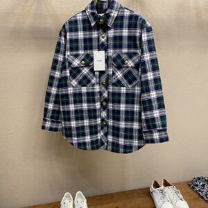 Celine, autumn and winter hit Arc de Triomphe single-breasted green plaid tweed coat shirt