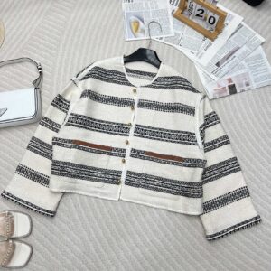Celine24Fw early autumn new tweed striped cardigan jacket