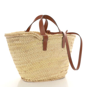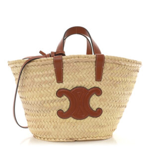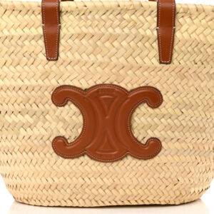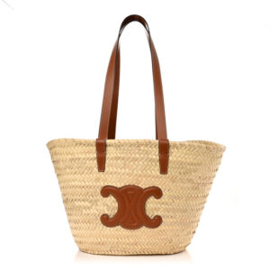 CELINE Raffia Calfskin Triomphe Medium Panier Tan