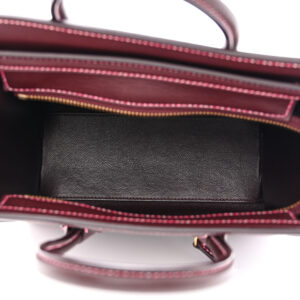 CELINE Satin Calfskin Nano Double Stitching Luggage Burgundy Pink