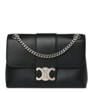 CELINE Shiny Calfskin Besace Clea Chain Triomphe Black