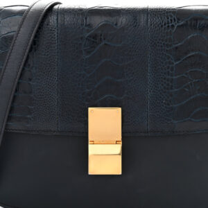 CELINE Ostrich Leg Medium Classic Box Flap Bag Dark Blue