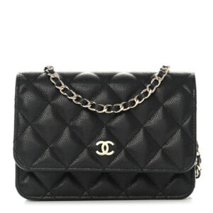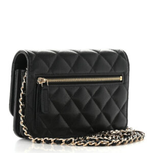 Size Length: 6 in Height: 4.25 in Width: 1.5 in Drop: 24 in This is an CHANEL Caviar Quilted Mini Wallet On Chain WOC in Black. This stylish wallet on chain is crafted of ...