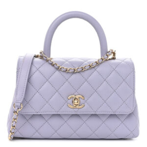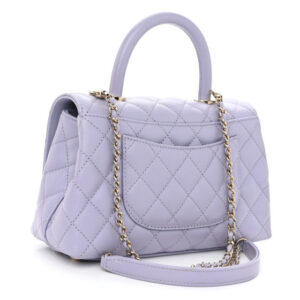 Size Base length: 8.75 in Height: 5.5 in Width: 3.5 in Drop: 2.75 in Drop: 18 in This is an HANEL Caviar Quilted Mini Coco Handle Flap in Light Purple. This stylish and classic tote ...