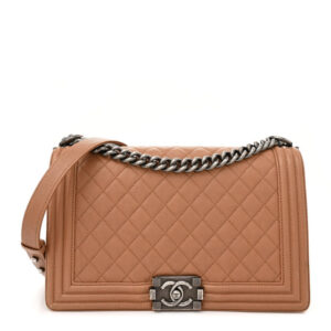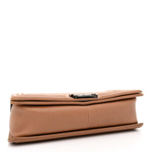 Size Base length: 11 in Height: 7 in Width: 3 in Drop: 12 in Drop: 20 in This is an CHANEL Caviar Quilted New Medium Boy Flap in Light Brown. This stylish shoulder bag is ...