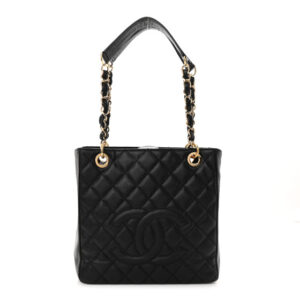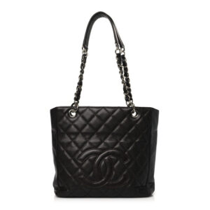 CHANEL Caviar Quilted Petit Shopping Tote PST in Black. This stylish tote is crafted of diamond quilted caviar leather in black. This shoulder bag features a rear patch pocket, large ...