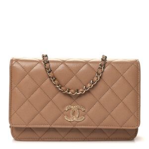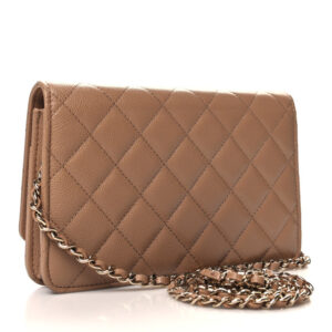 Size Length: 7.5 in Width: 1.25 in Height: 5 in Drop: 24 in This is an CHANEL Caviar Quilted Multi Chain Wallet On Chain WOC in Beige. This shoulder bag features a gold chain-link ...