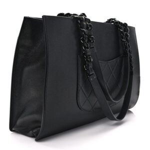 CHANEL Caviar Quilted My Everything Large Shopping Tote in Black. This edgy shoulder bag features luxurious calfskin leather in signature diamond-shaped quilting in black. The shoulder straps are crafted ...