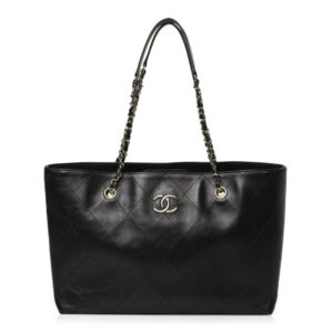 Chanel Glazed Calfskin Stitched Shopping Tote Black