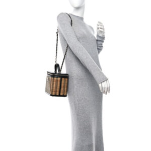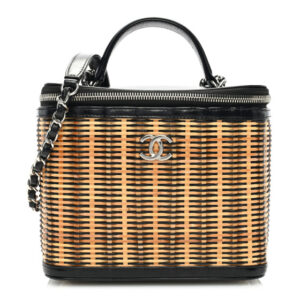 Chanel Glazed Calfskin Raffia Vanity Case Bag Black Beige
