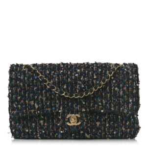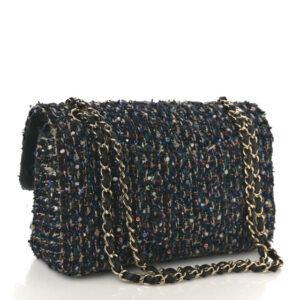 Chanel Glittered Tweed Quilted Medium DoubleFlap Navy Blue Multicolor
