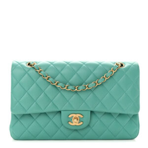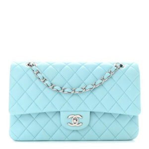Chanel Lambskin Quilted Medium Double Flap Light Blue