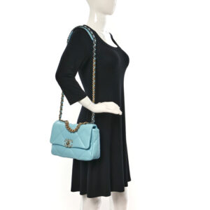 Chanel Lambskin Quilted Medium Chanel 19 Flap Light Blue
