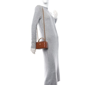 Chanel Lambskin Quilted Metal Twist Small Top Handle Vanity Case With Chain Brown
