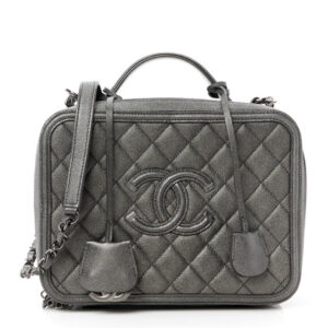 Chanel Metallic Caviar Quilted Medium CC Filigree Vanity Case Dark Silver