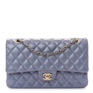 Chanel Metallic Lambskin Quilted Medium Double Flap Purple