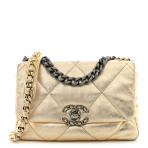 Chanel Metallic Lambskin Quilted Medium 19 Flap Gold