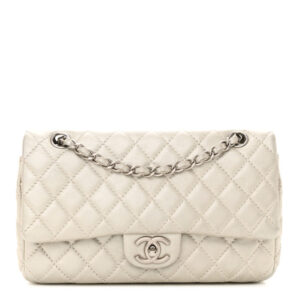 Chanel Metallic Lambskin Quilted Medium Double Flap Silver