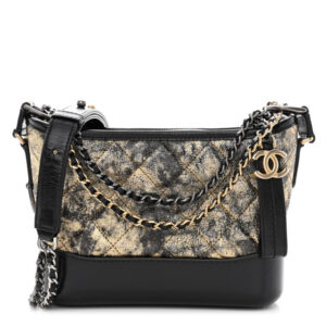 Chanel Metallic Crumpled Goatskin Quilted Small Gabrielle Hobo Black Gold