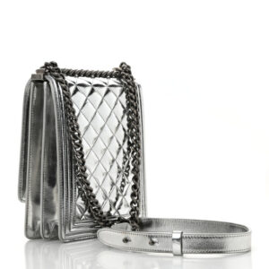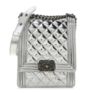 Chanel Metallic Goatskin Quilted North South Boy Flap Silver