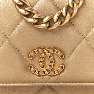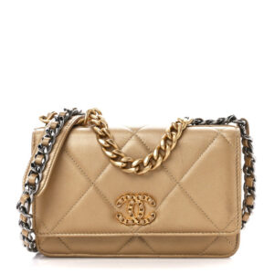 Chanel Metallic Goatskin Quilted Chanel 19 Wallet On Chain WOC Gold