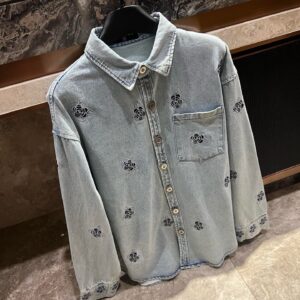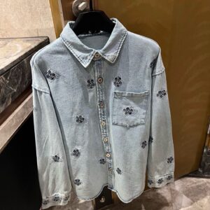 Chanel Chanel Double C Camellia Heavy Embroidery Custom Button Washed Denim Shirt Jacket