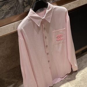 CHANEL Chanel Cherry Blossom Pink Double C Striped ShirtA style that hides your flesh and makes you look thinner!The vertical stripes are clearly visible!It shows texture!It has a layered ...