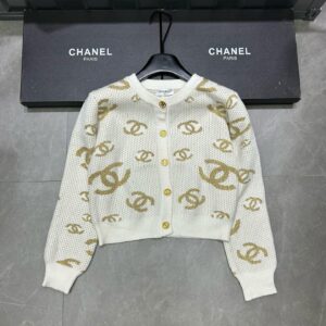 Chanel Chanel Double C Gold Jacquard Custom Gold Button Round Neck Long Sleeve Knitted Sweater Cardigan Jacket