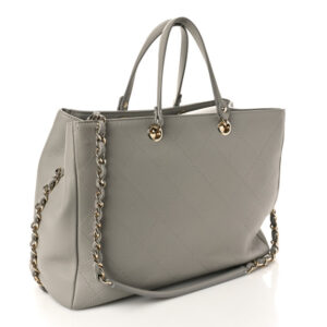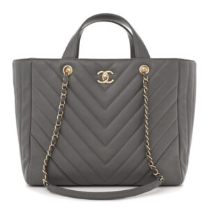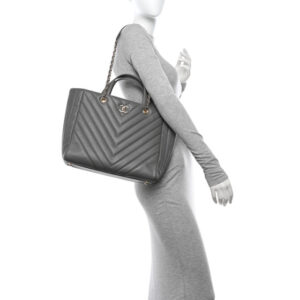 Chanel Calfskin Chevron Quilted Statement Shopping Tote Grey