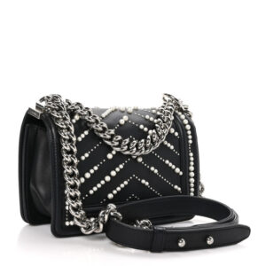 Chanel Calfskin Pearl Chevron Small Boy Flap Black