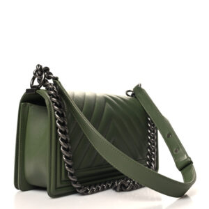 Chanel Calfskin Chevron Quilted Medium Boy Flap Dark Green