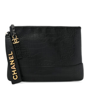 Chanel Calfskin Crocodile Embossed Quilted Medium Gabrielle Cosmetic Case Black
