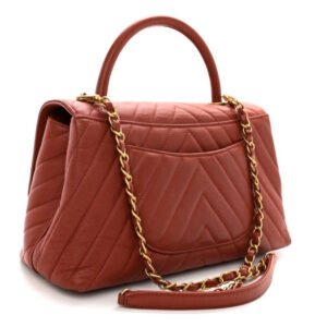 Size Length: 11 in Height: 7 in Width: 4.45 in Drop: 3.25 in Drop: 19.5 in This is an CHANEL Caviar Chevron Quilted Small Coco Handle Flap in Dark Orange. This chic tote is crafted ...