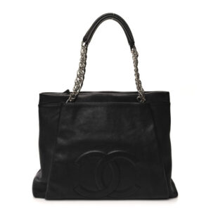 This is an authentic CHANEL Caviar Large CC Tuck Tote in Black. This is a classically styled tote that is beautifully crafted of grained calfskin leather in black. The ...