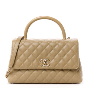 Size Length: 11 in Height: 7 in Width: 4 in Drop: 3.5 in Drop: 19.5 in This is an CHANEL Caviar Lizard Embossed Quilted Small Coco Handle Flap in Dark Beige. This stylish and classic ...
