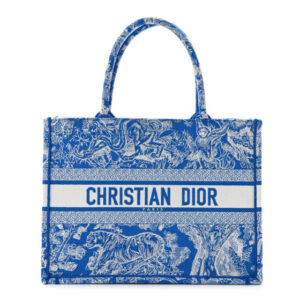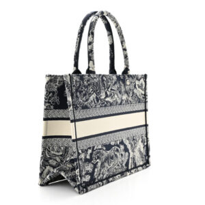 Christian Dior CHRISTIAN DIOR Canvas Embroidered Medium Toile De Jouy Reverse Book Tote Blue