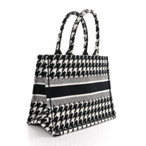 Christian Dior CHRISTIAN DIOR Canvas Macro Houndstooth Embroidered Medium Book Tote Black White