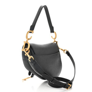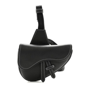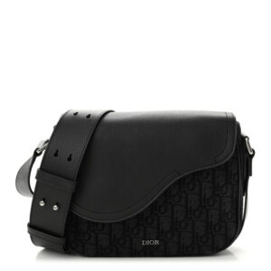 Christian Dior Grained Calfskin Saddle Bag With Strap Black