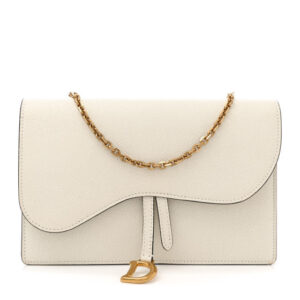 Christian Dior Grained Calfskin Saddle Chain Pouch Off White