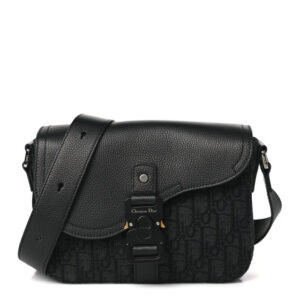 Size Base length: 9 in Height: 6.5 in Width: 2.25 in Drop: 16 in This is an CHRISTIAN DIOR Oblique Jacquard Grained Calfskin Saddle Pouch With Strap in Black. This is a distinctive Dior ...