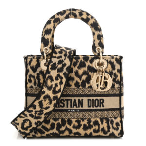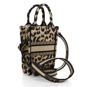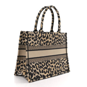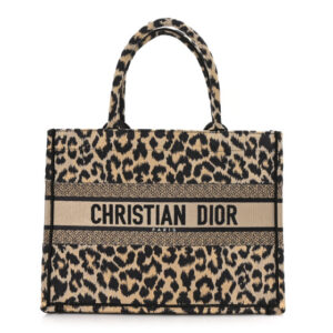 Christian Dior Canvas Mizza Embroidered Medium Leopard Book Tote Beige
