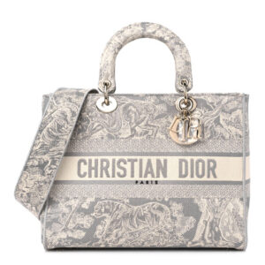 Christian Dior Canvas Toile De Jouy Reverse Embroidered Large Lady D-Lite Grey