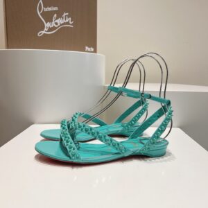 Christian Louboutin Lu Boting oblique strap rivet flat sandals light blue