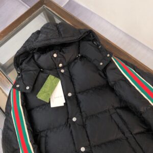 GUCCI/Gucci GG obscure pattern old letter logo double sleeves red and green ribbon down jacket