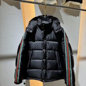 GUCCI/Gucci GG obscure pattern old letter logo double sleeves red and green ribbon down jacket