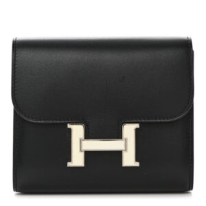 HERMES Allegro Constance Compact Passant Glow Wallet Black