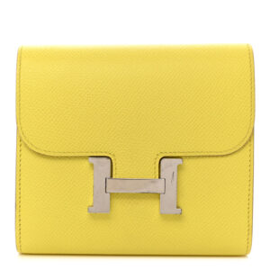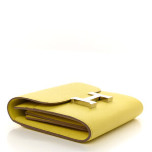 Size Base length: 5 in Height: 4.75 in Width: 1 in Description This is an HERMES Epsom Constance Short Wallet in Lime. This stunning wallet is crafted of fine epsom calfskin leather in yellow. ...