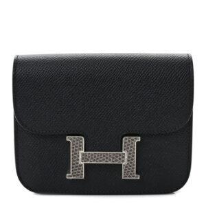 HERMES Epsom Lizard Constance Slim Wallet Black