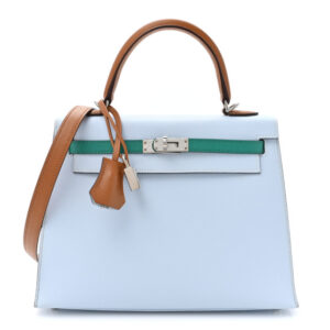 HERMES Epsom Tri-Color Kelly Sellier 25 Bleu Brume Vert Jade Gold